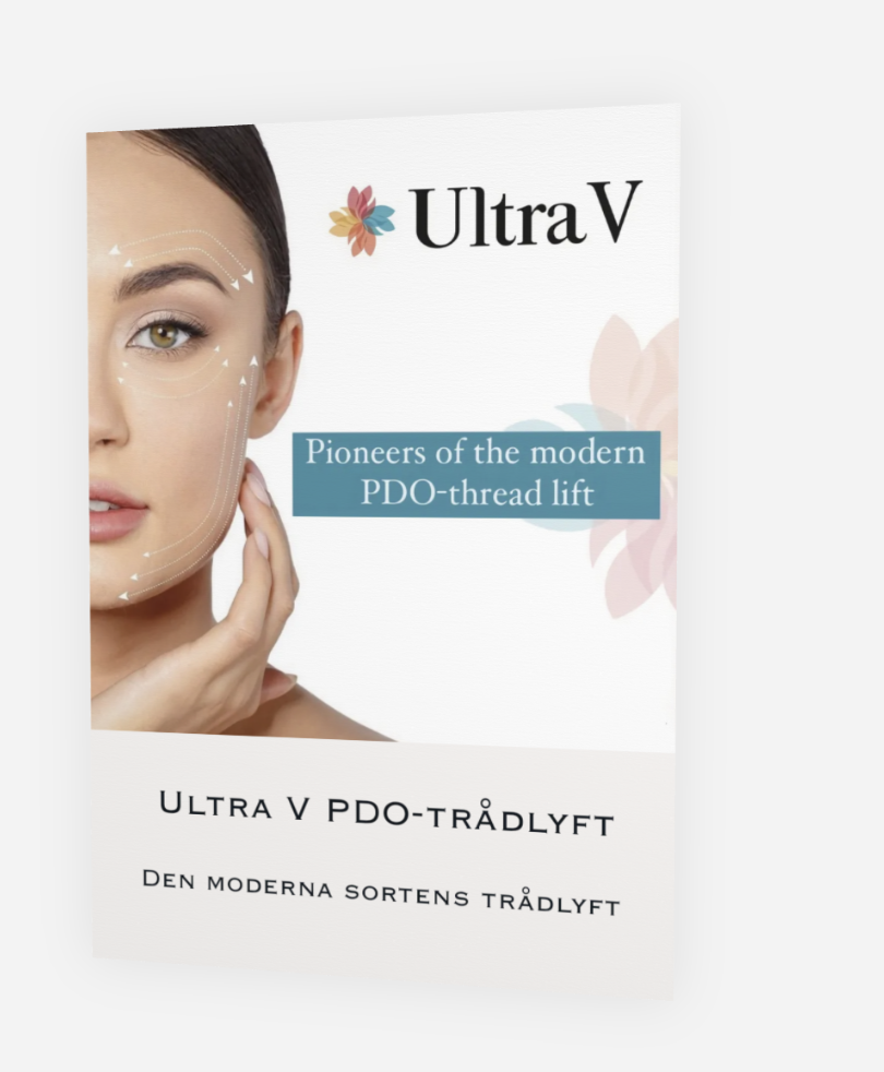 Ultra V Trådlyft broschyrer för dig som arbetar med den moderna sortens trådlyft. Skickas kostnadsfritt, ange önskat antal. Kommer i respektive språk där din klinik är lokaliserad.